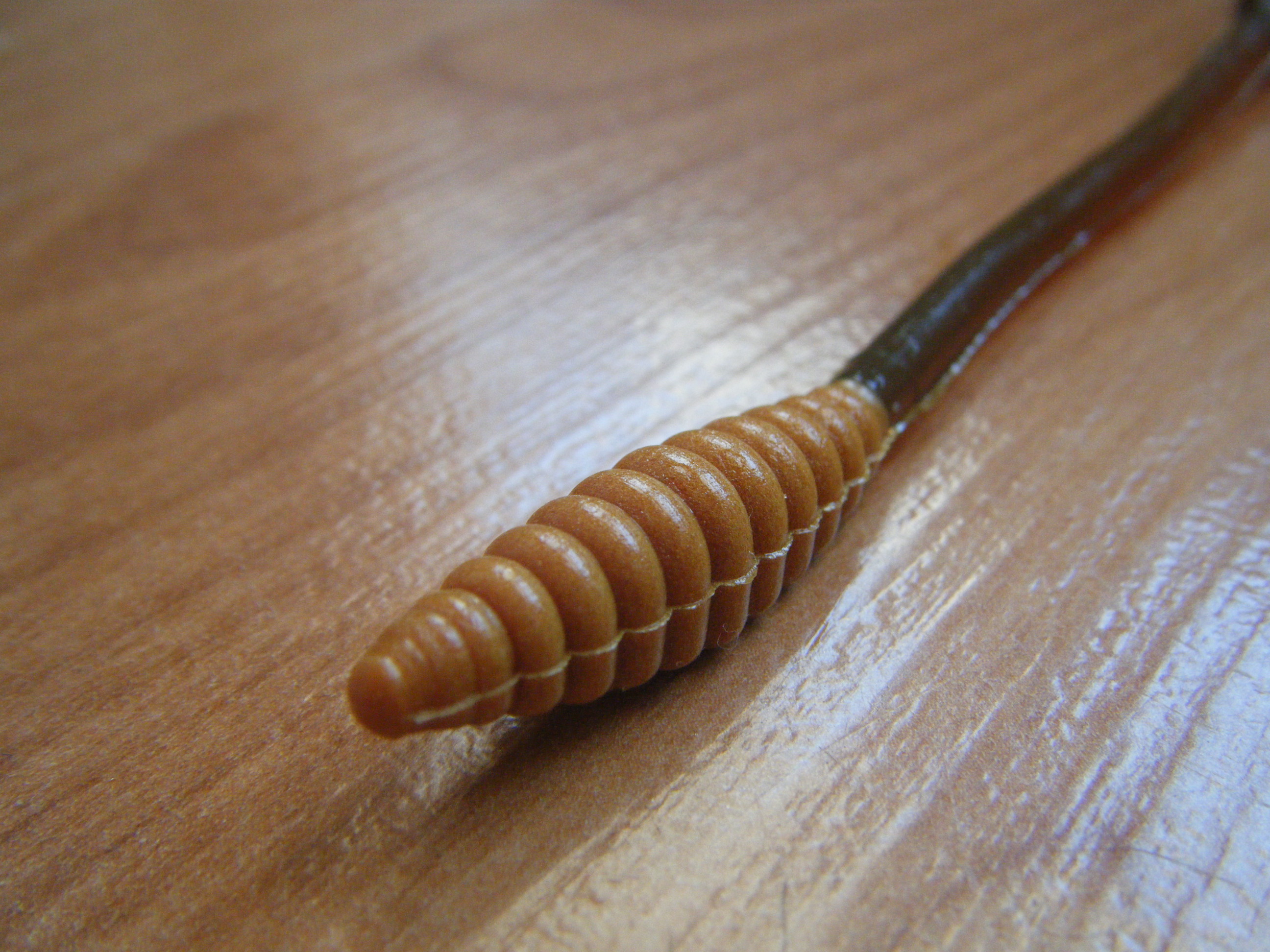 El diseño de este cebo es peculiar, empieza con un cuerpo redondo por arriba y plano por debajo que posteriormente, variando su tamaño, termina con una cola que tiene un gran parecido a una cola de serpiente de cascabel, que en todos los modelos es de color distinto al cuerpo.