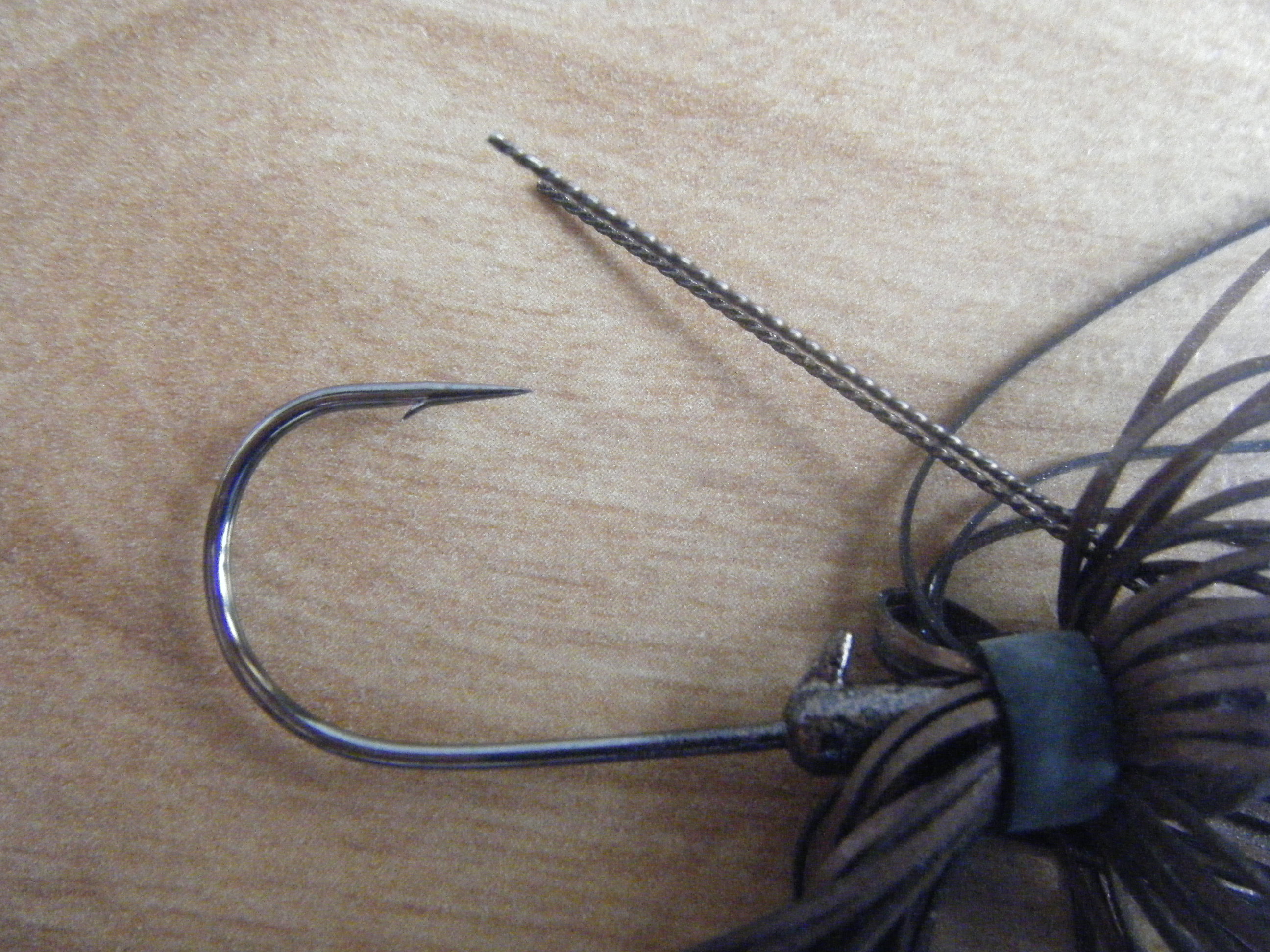Este jig disimula muy bien el antialgas en comparacion con los de fibra, incorporando dos sirgas rígidas del color de la cabeza del jig que pueden moldearse y modificar por parte del usuario su dureza. En los pantanos con peces muy resabiados este nuevo sistema que cada vez están incorporando más empresas puede ser un punto a favor para el pescador.