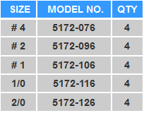 El precio de estos anzuelos es de $4.99 en los tamaños y cantidades siguientes:
