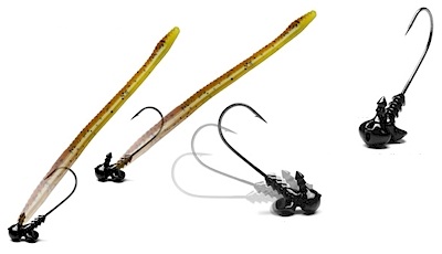Estos anzuelos han sido diseñados para mantener el señuelo blando en posición vertical. A diferencia de la competencia, MegaStrike a diseñado una doble cabeza, una de ellas de forma plana con un toque cóncavo y situada en su parte trasera, como punto de apoyo y equilibrio.