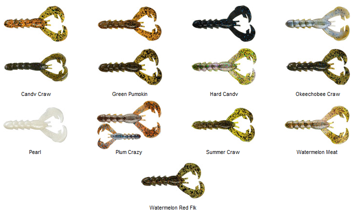 Entre los productos de Strike king encontramos un pequeño cangrejo denominado “Baby Rage Craw”. Este cangrejo esta disponible en dos tamaños aunque reciben diferentes nombres: