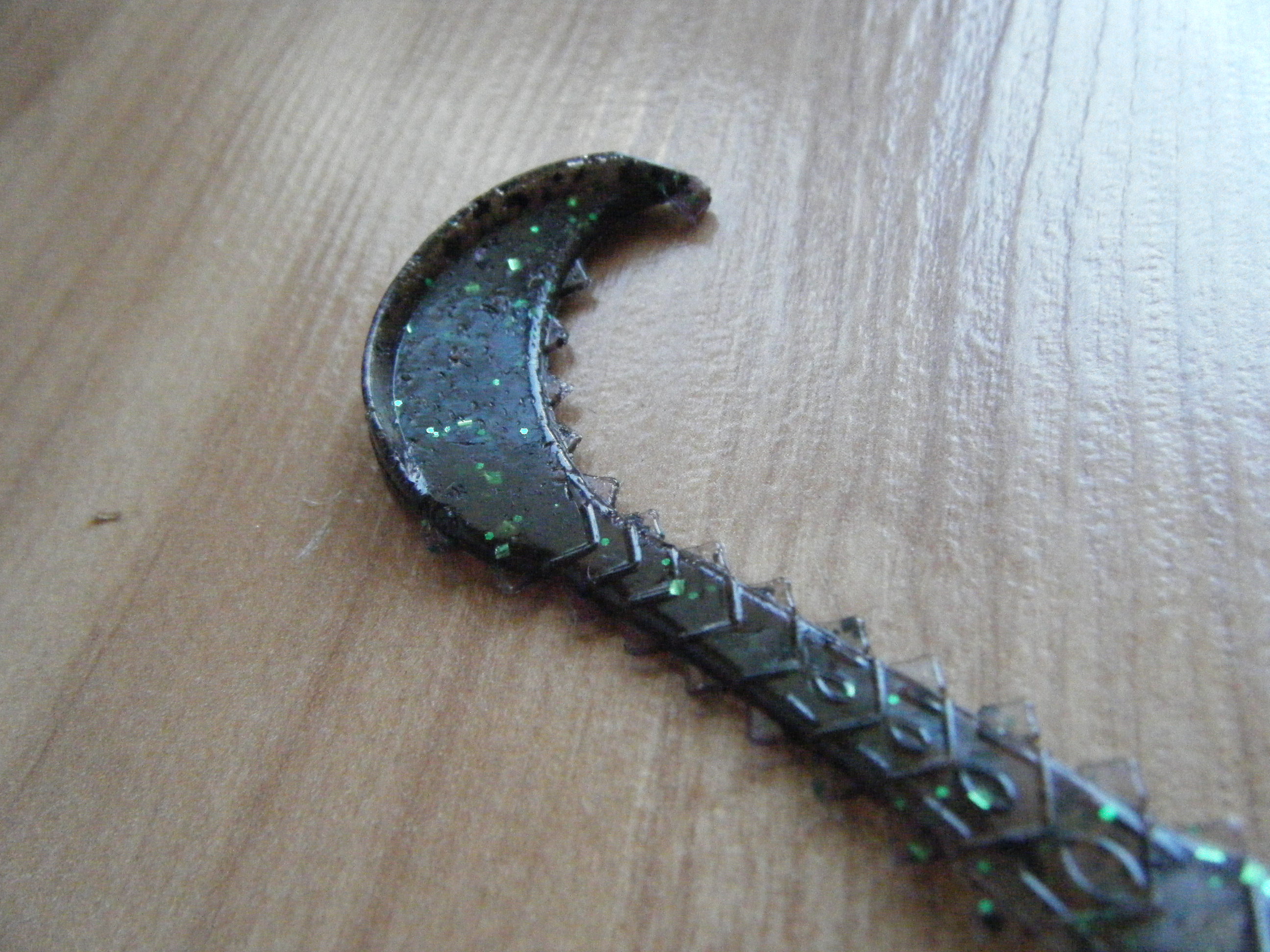 Este señuelo se cuerpo plano tiene dos aletas lateras en forma de luna decreciente así como una cola delgada y larga que termina con el mismo diseño que sus alteas laterales. Este diseño conocido como “Rage” proporciona un número elevado de vibraciones, pudiendo ser utilizado en varias velocidades de recogida.