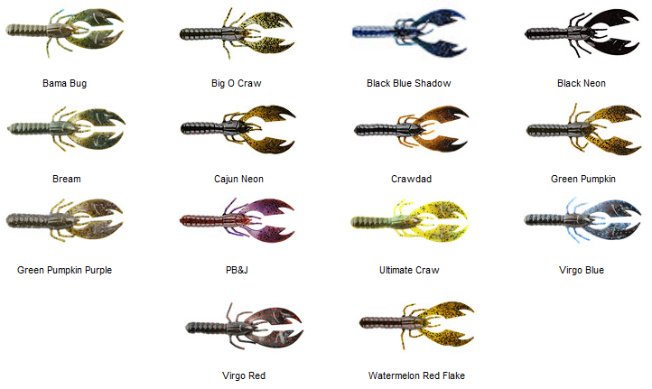 Yum incluye en su línea de señuelos F2 unos cangrejos que reciben el nombre de “Craw Papi”. Este señuelo esta disponible en las siguientes medidas y colores: