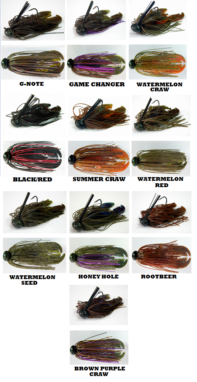 Este Jig esta disponible en los pesos de 1/2, 3/4 y 1oz y en los siguientes colores: