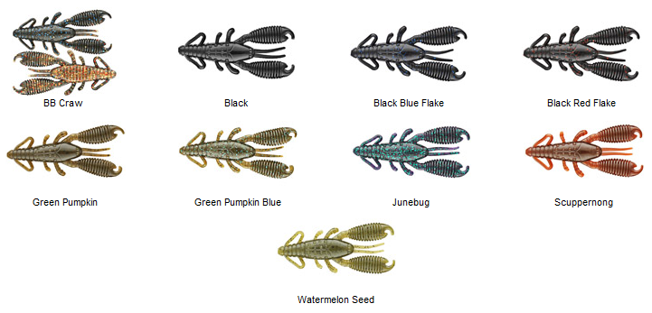 Reins es una empresa japonesa conocida por sus señuelos de acción flotante, en esta ocasión analizaremos el “Ring Craw”, disponible en dos tamaños pequeños, tamaño de 2’5” y 3”, en paquetes de 6 unidades y un precio aproximado de 8,5€ y 9,9€ respectivamente.