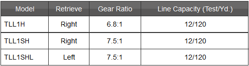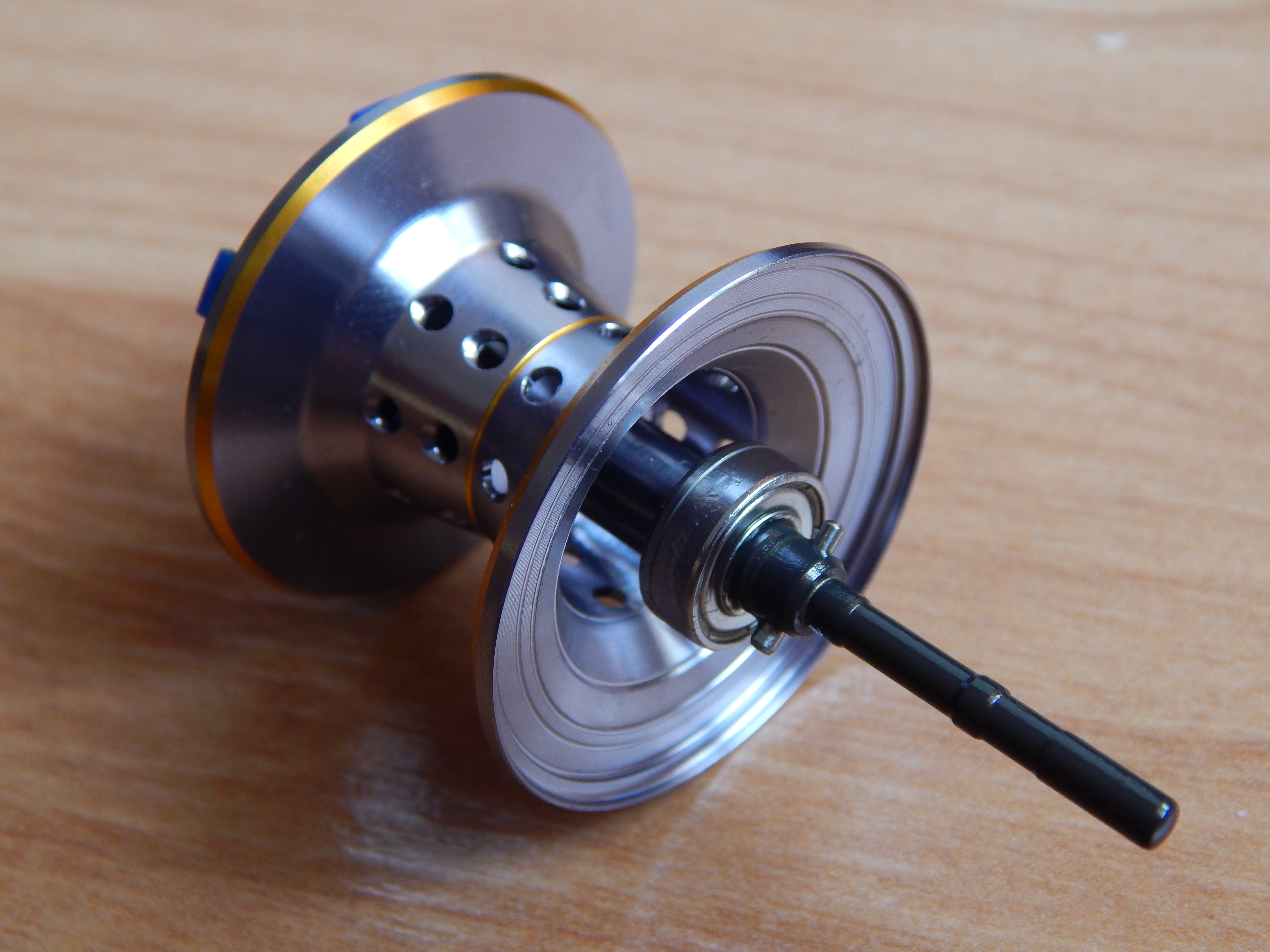 La bobina destaca por estar muy aligerada y con una capacidad de 120 yardas de 12lb, construida mediante duraluminio forjado de calidad aeronáutica, del mismo material constan el engranaje de transmisión y el eje del cigüeñal.