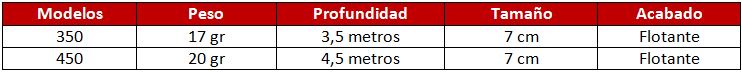 Este crankbait se fabrica en dos modelos y un precio aproximado de 19,5 euros: