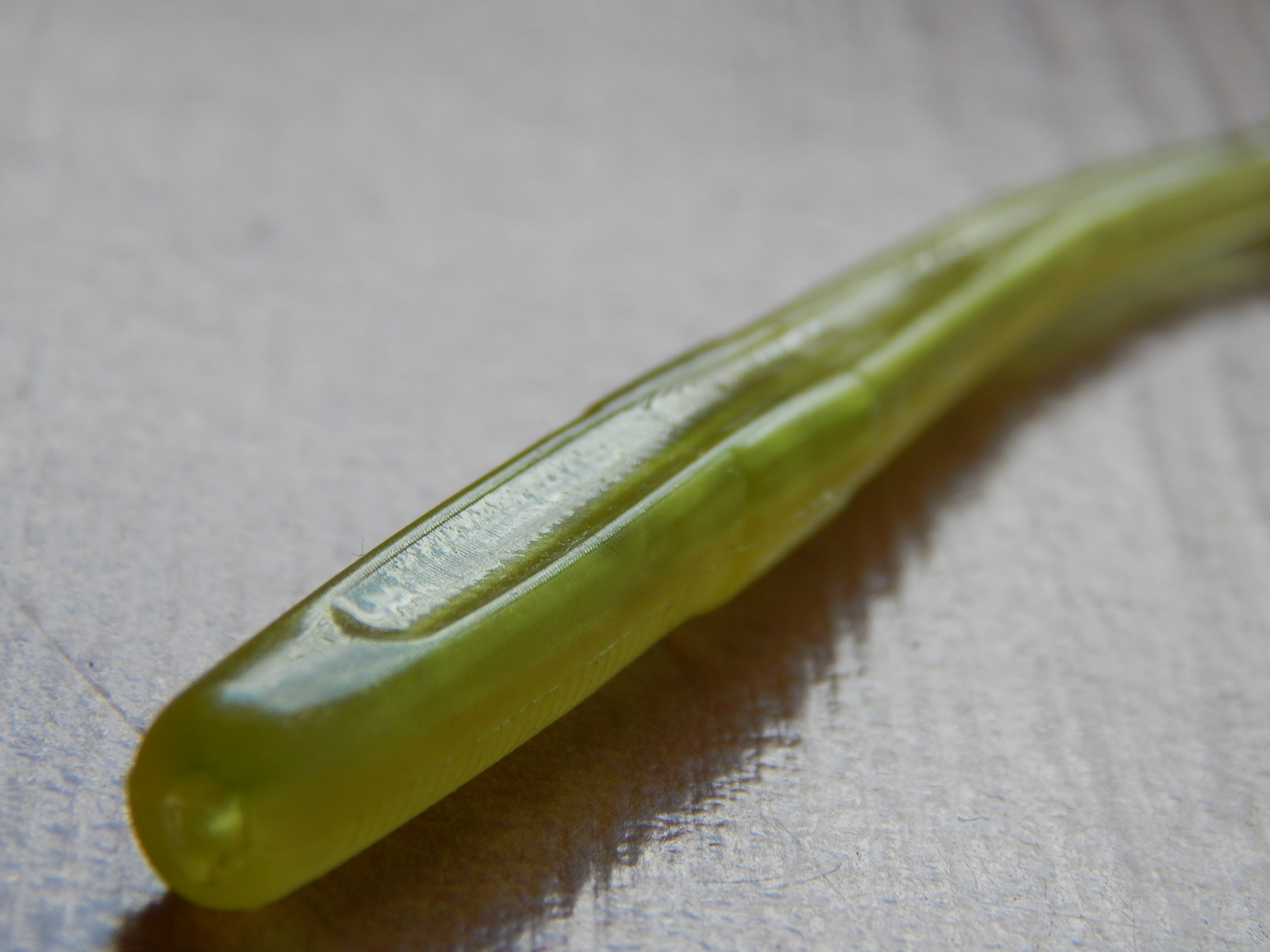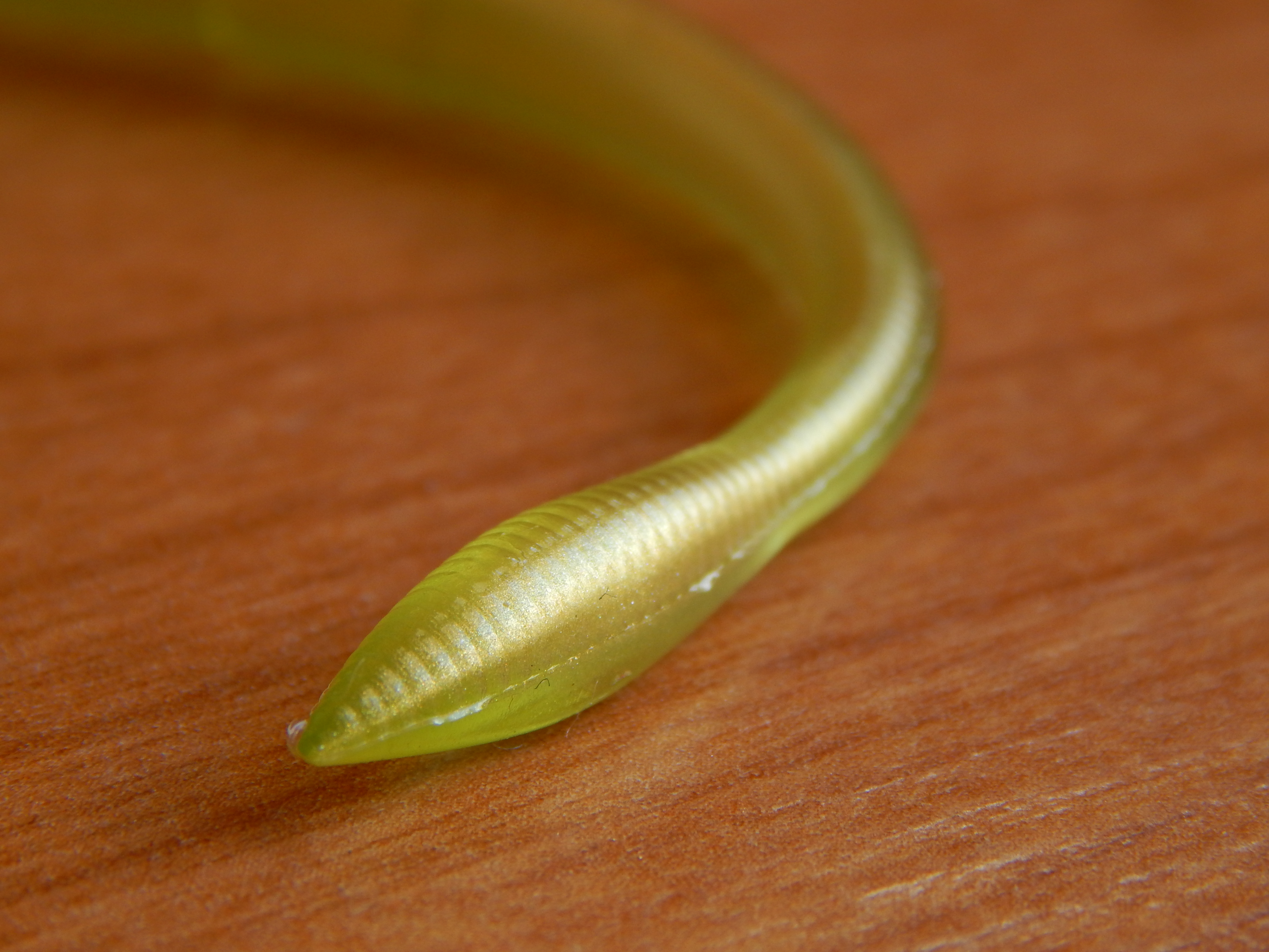 El cuerpo decreciente de esta lombriz tiene un sutil y casi imperceptible anillado a lo largo de su recorrido.