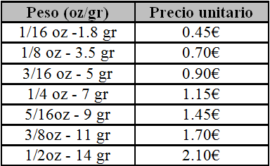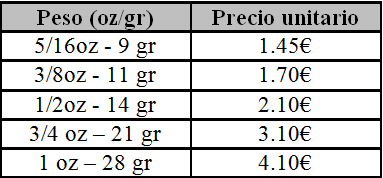 Tungstens-All ofrece tres tipos diferentes de “plomos”, aunque realmente deberíamos denominarlos “pesos” por el hecho de que el material empleado no es el plomo, sino tungsteno en una composición del 97% con todas las ventajas que esto conlleva y que hemos tratado con anterioridad.
