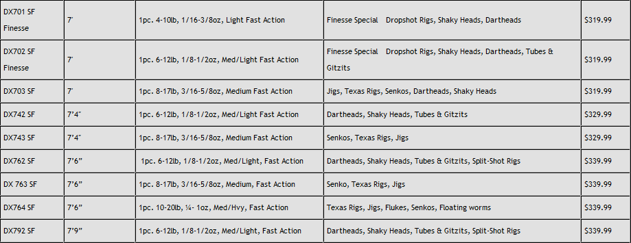 El blank sigue siendo “top secret” pero ha sido modificado incorporando también carbono Toray, creando un compuesto de carbono de alto módulo y una resina que otorga una gran acción, más rápida que el modelo anterior, un aumento en la sensibilidad y una disminución del diámetro del blank.