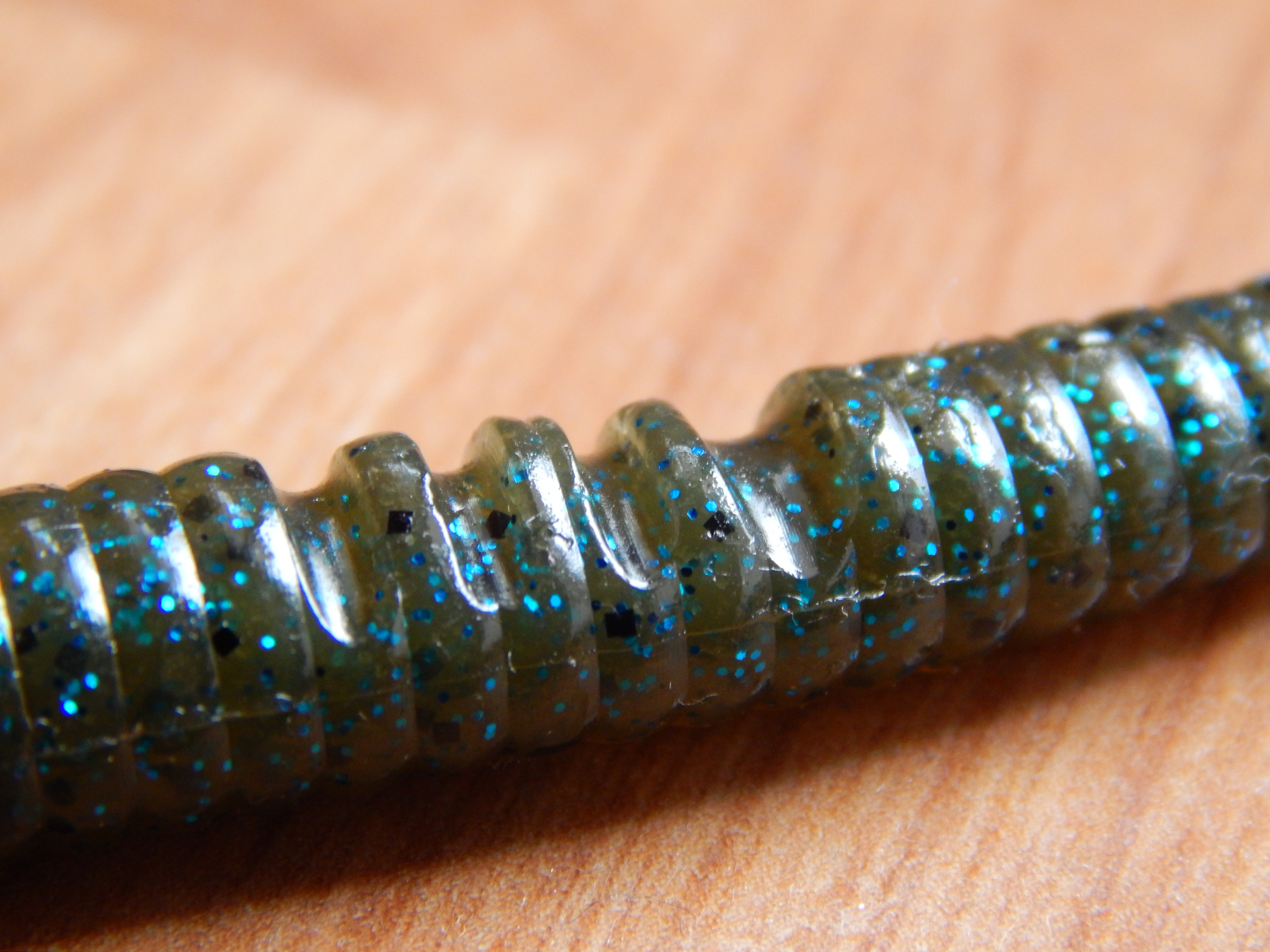 Antes de llegar a su parte central, destacan cuatro ranuras de mayor profundidad a las cuales se les asigna una doble funcionalidad, en caso de las tres primeras ranuras sirven para poder esconder la punta del anzuelo y evitar así enganches, mientras que la cuarta y última ranura, la cual es más ancha y profunda que las anteriores, tiene como objetivo aportar una mayor movilidad a la parte final de la lombriz.