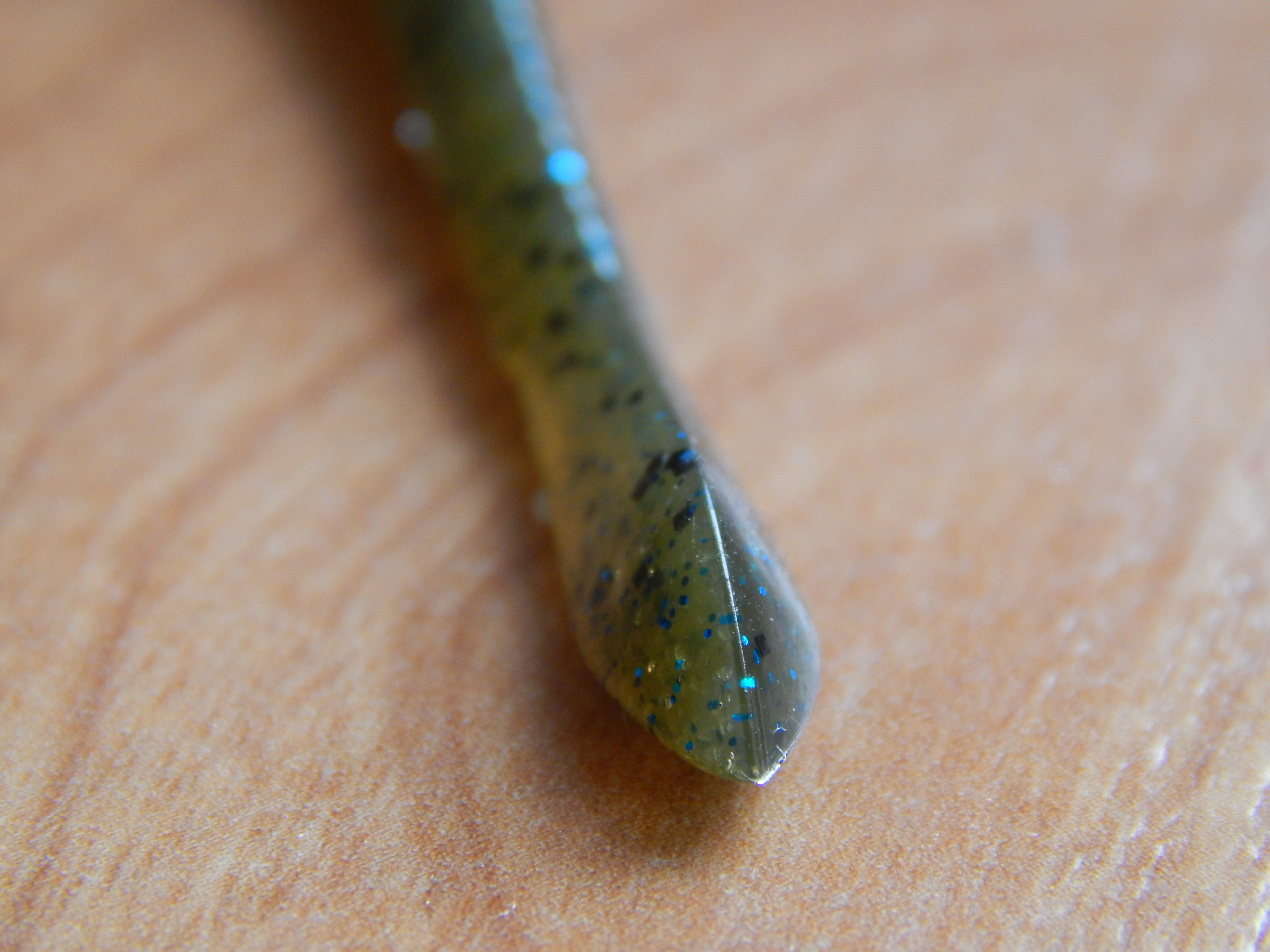 En su parte inferior encontramos la construcción de una pequeña y fina ranura que no solo sirve para “marcar” donde introducir el anzuelo, sino que el equipo de D-style lo construyó principalmente para utilizarla en técnicas como en neko rig y wacky mediante la utilización de una pequeña goma y aumentar así la durabilidad del señuelo y su mejor manejo.