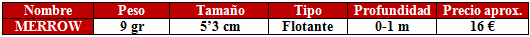 El Jackson Merrow integra un sistema de contrapeso fijo en su parte delantera para lograr un mayor lanzado. Además, el Merrow no incorpora sonajero o cualquier estructura similar encargada de provocar ruido para evitar ser rechazado por aquellos basses mas resabiados.