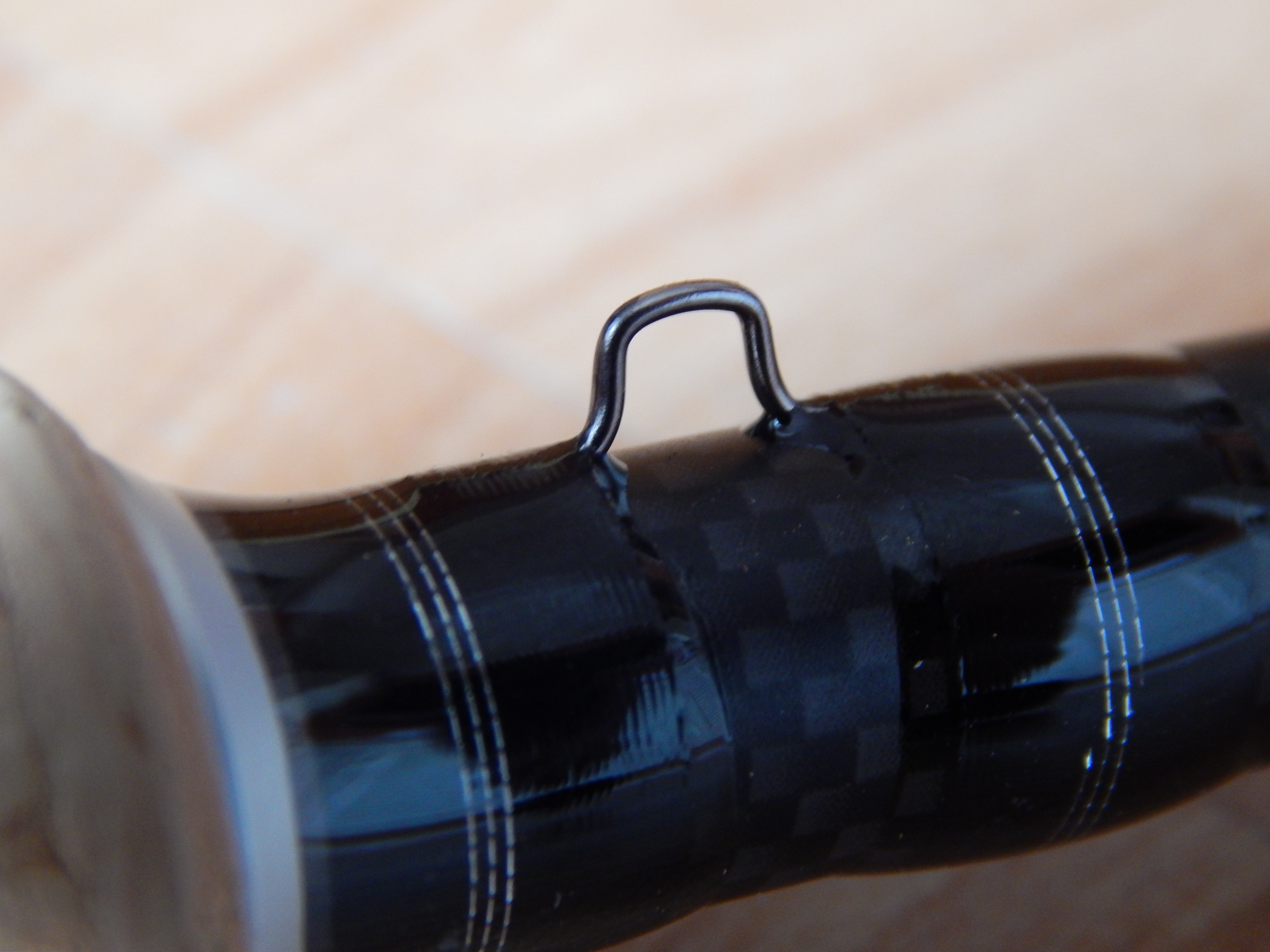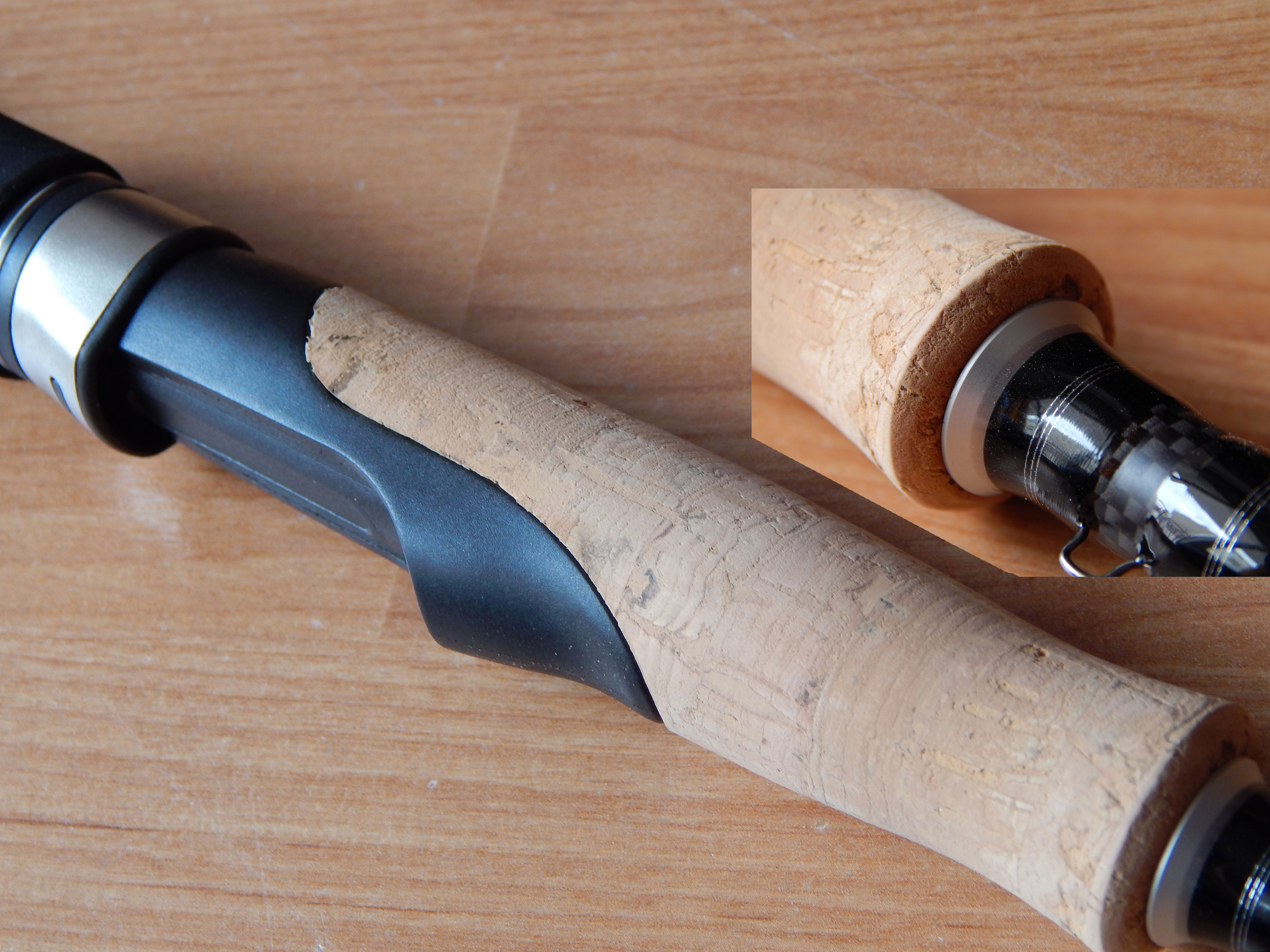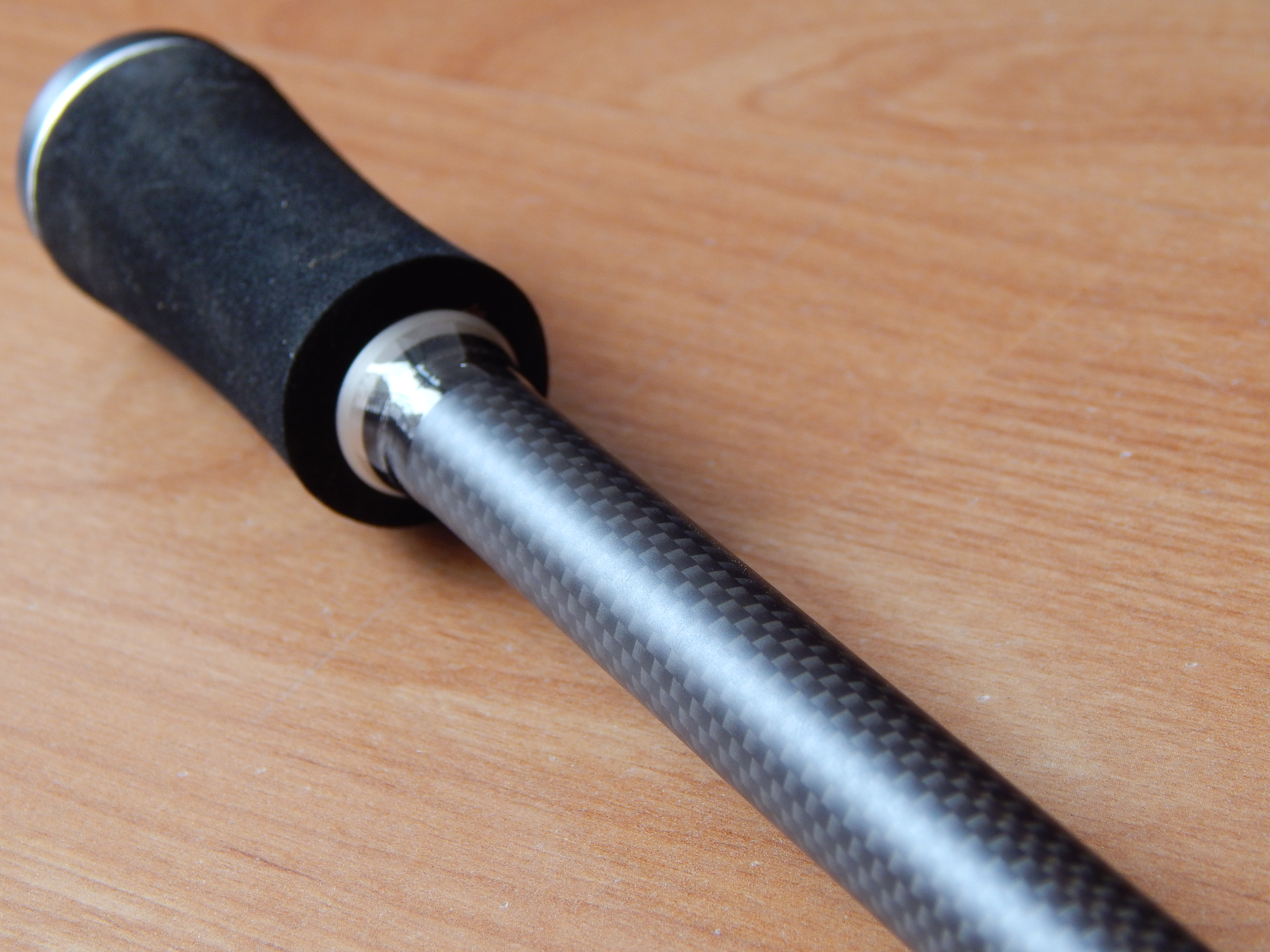 La empuñadura se ha construido mediante corcho y recibe un diseño ligeramente creciente en su parte final, con una longitud de 25 entímetros. Su terminación se amolda al blanck mediante un aro de aluminio.