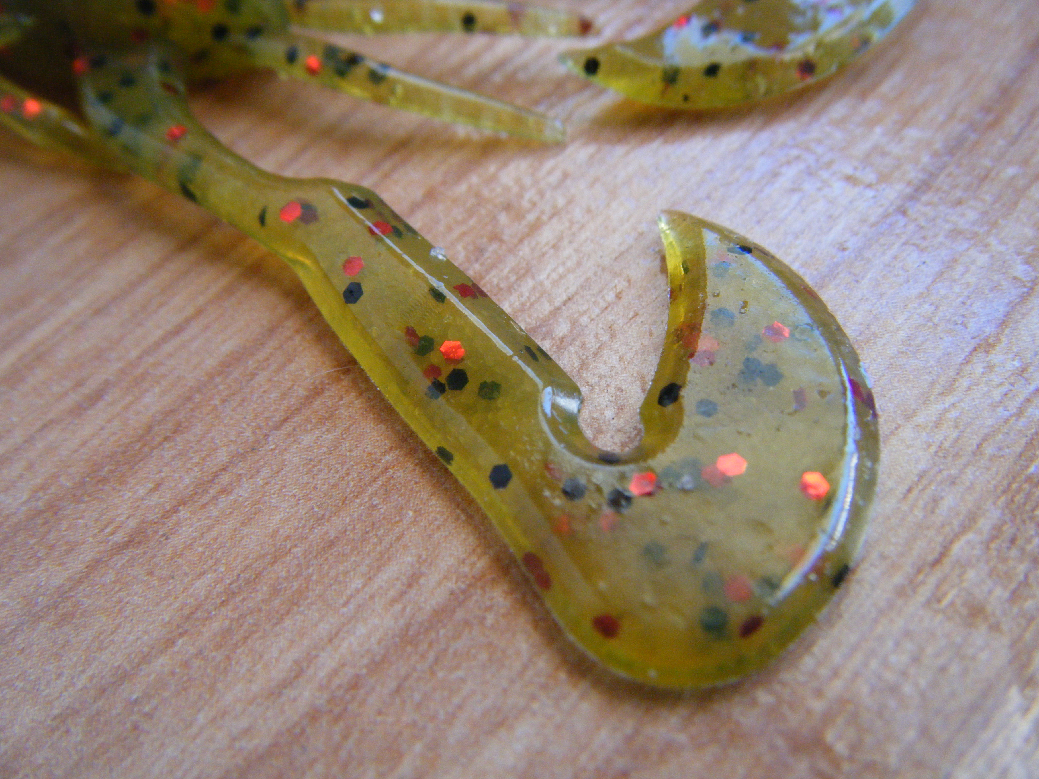 La densidad del vinilo es blanda y junto a la fuerte esencia a ajo que introduce la empresa logran una gran retención del señuelo en la boca del bass.