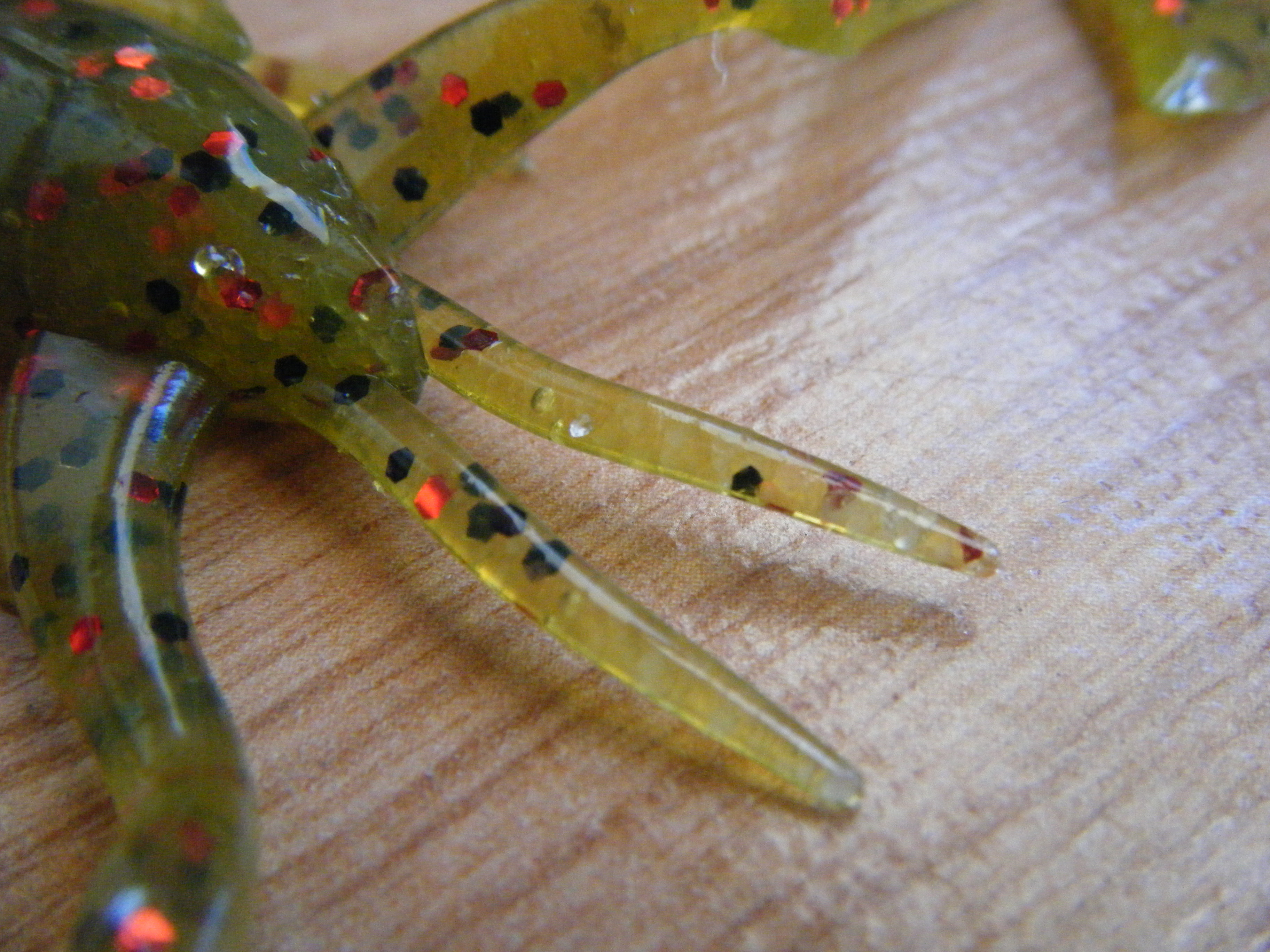 En cada lateral del Vib Killer Craw encontramos 3 patas de tamaño creciente, con un diseño curvado y orientado hacia su parte inicial. Este diseño garantiza una mayor movilidad y en consecuencia realización de vibraciones en cada movimiento del señuelo bajo el agua.