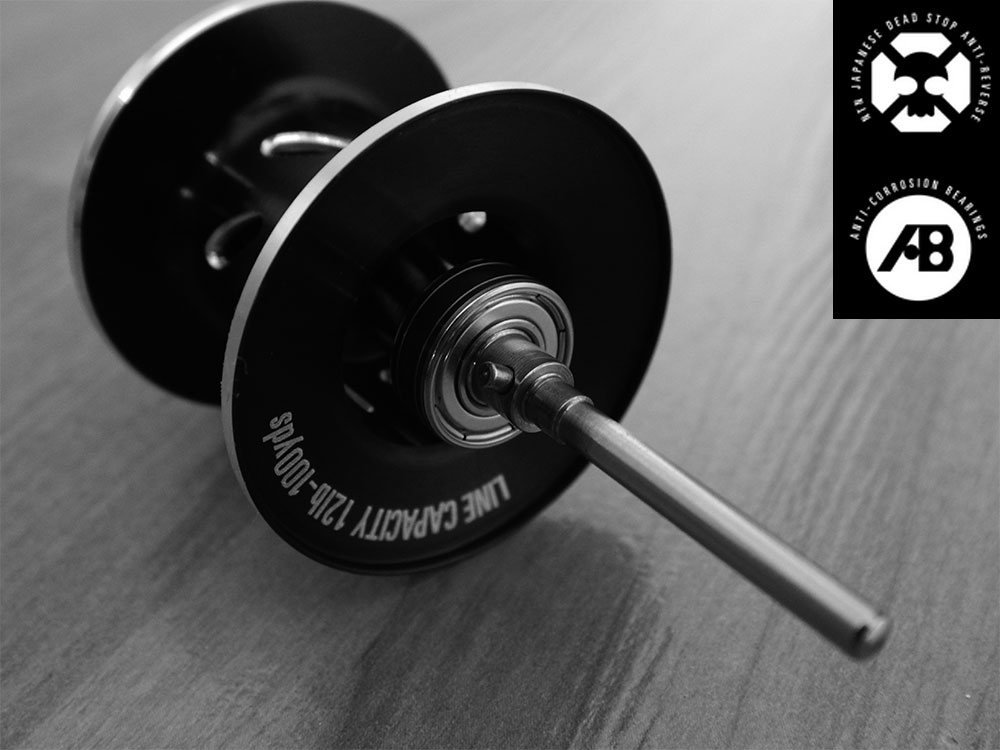 Incorpora 7 rodamientos que se desglosan en 3 cojinetes de altas revoluciones anti corrosión, 3 de acero inoxidable con blindaje y 1 cojinete japonés encargado de la parada anti reverse disminuyendo así la creación de posibles enredos/bucles.