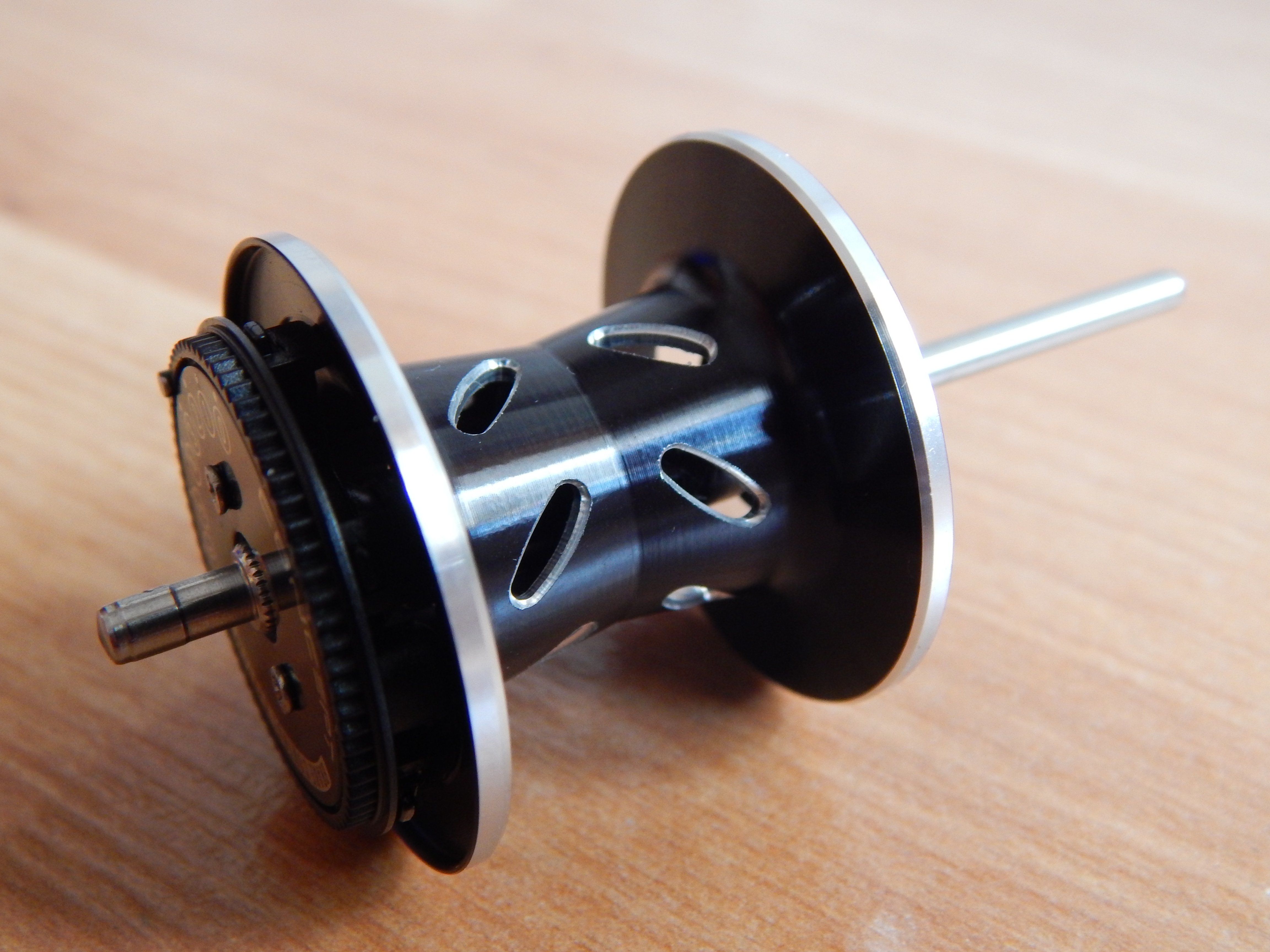 La bobina aligerada está construida mediante duraluminio ofreciendo una capacidad de 100 yardas de 12 lb. Su peso se sitúa en 16,87 gramos.