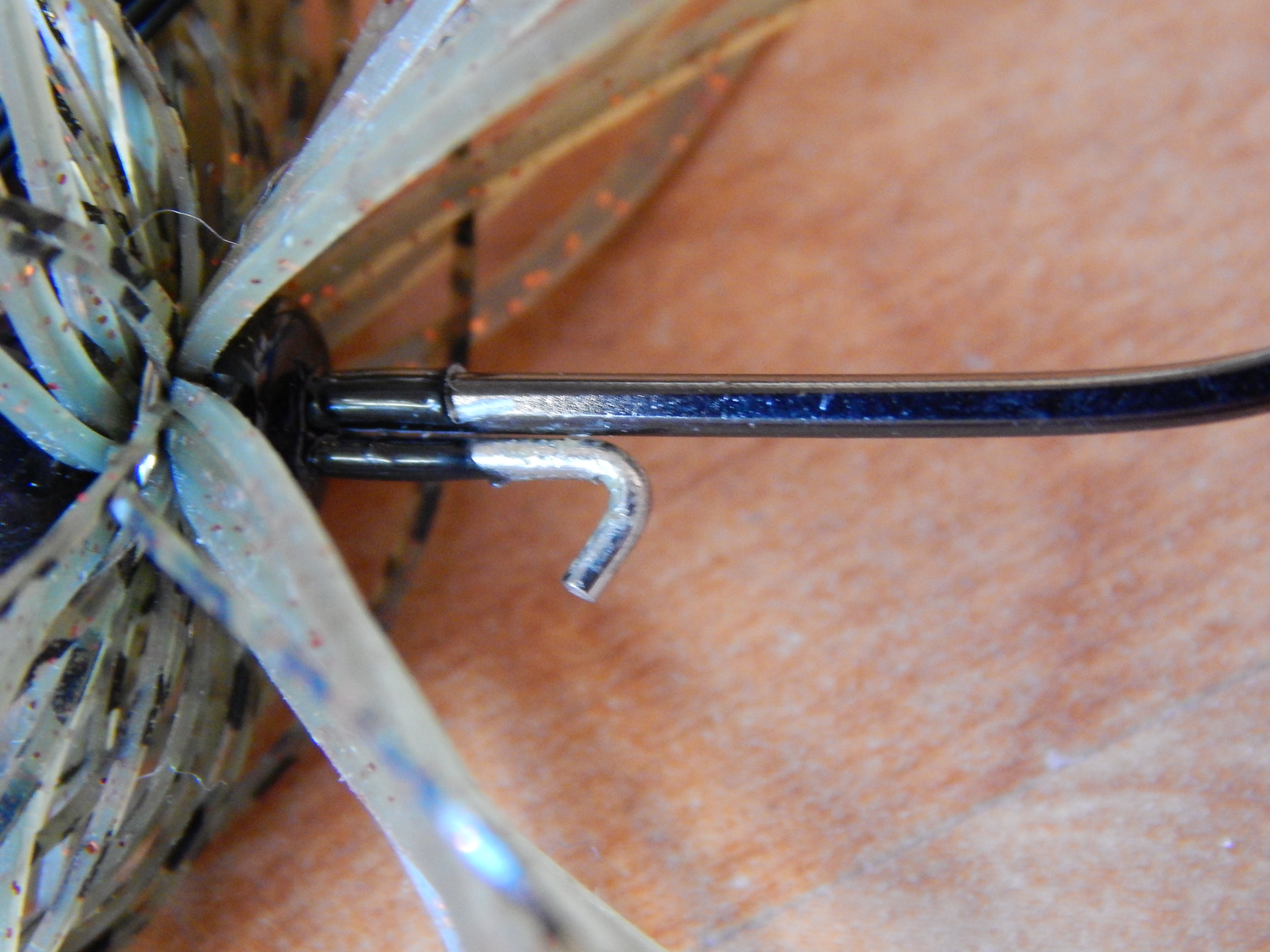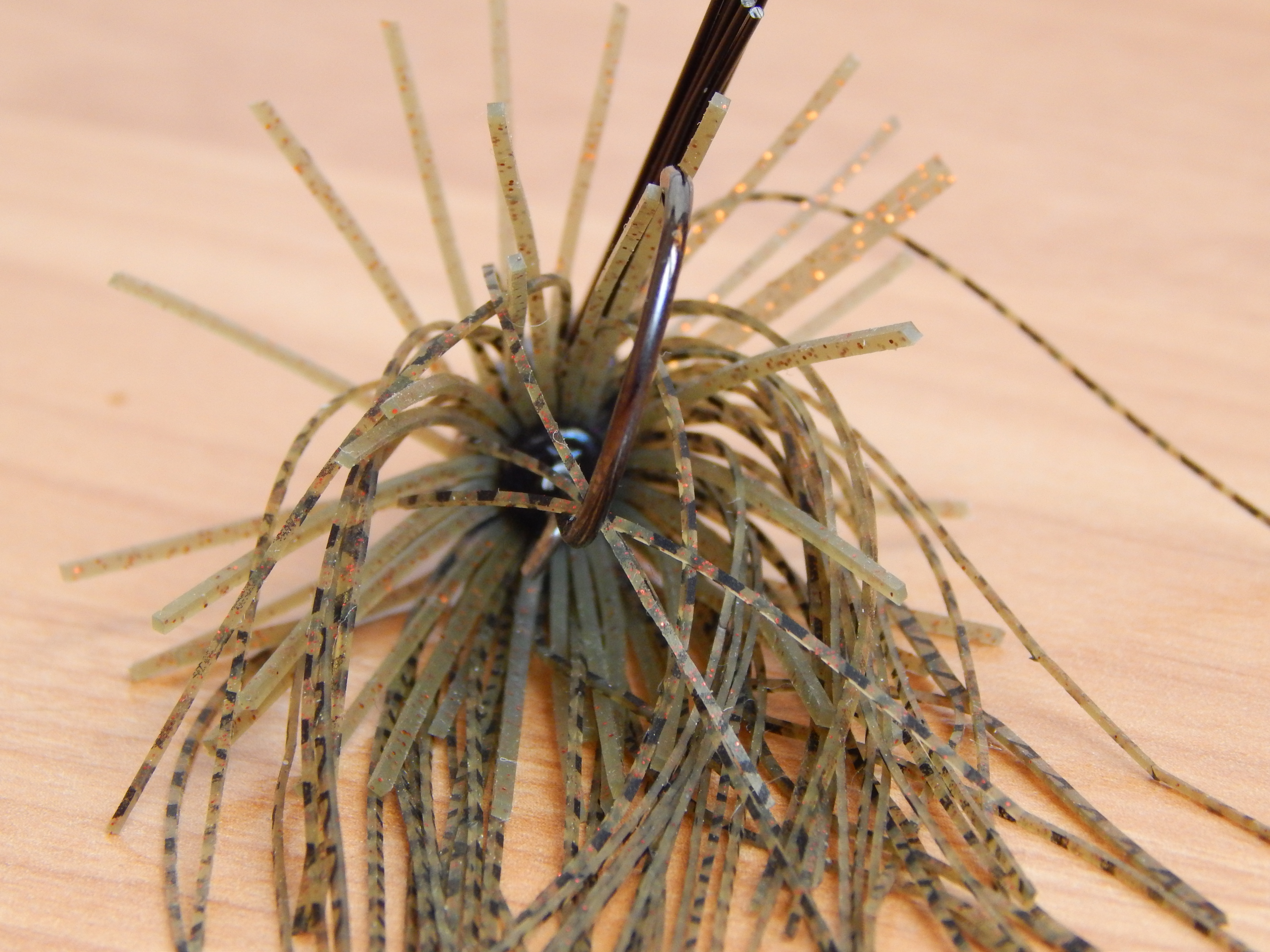 El anzuelo que incorpora es mediano de buena apertura, muy punzante y resistente, proviene de la empresa Gamakatsu y recibe un diseño con una inclinación de 30 grados que la empresa asegura que le otorga un mayor deslizamiento entre la vegetación.